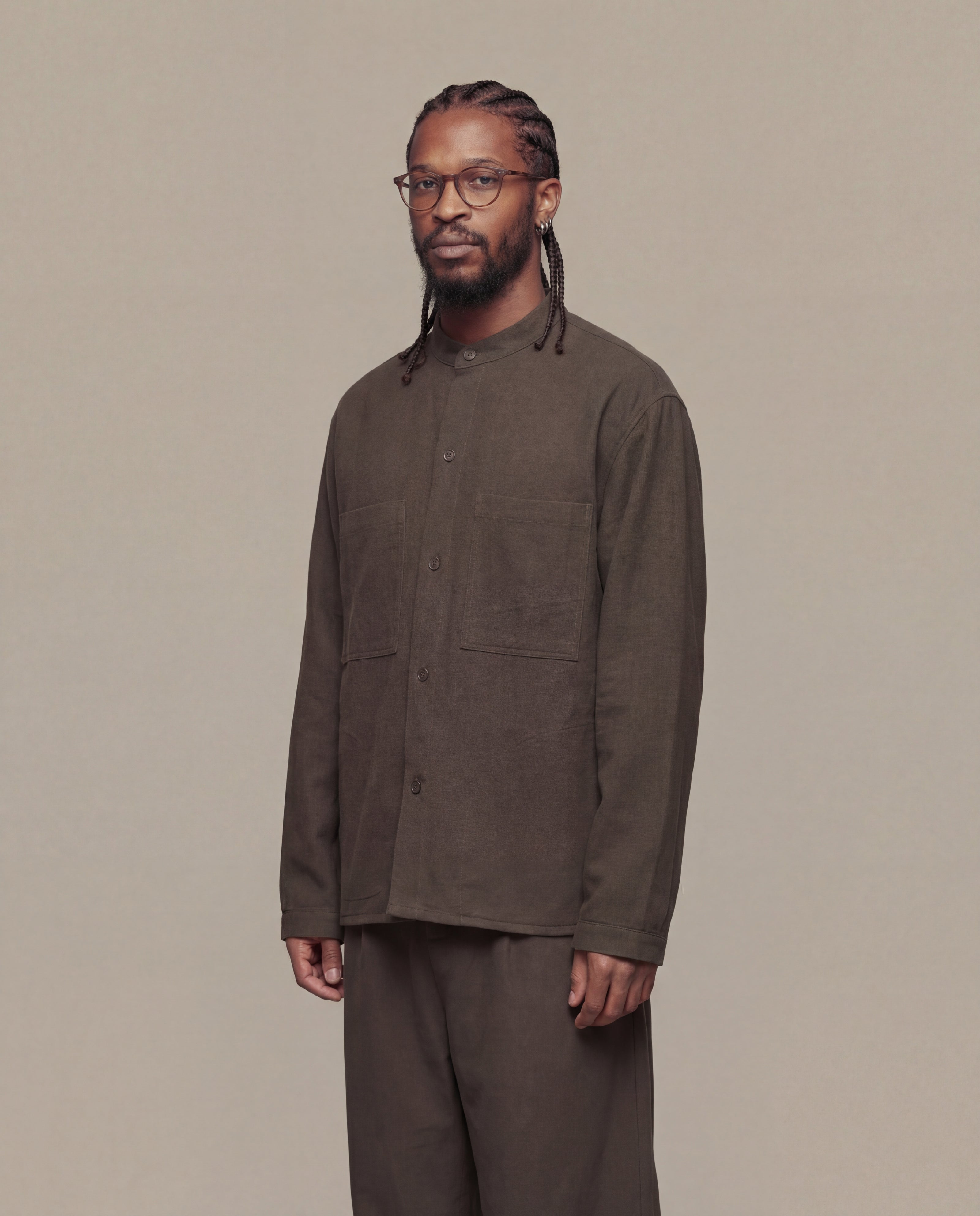 - Overshirt with nehru stand collar