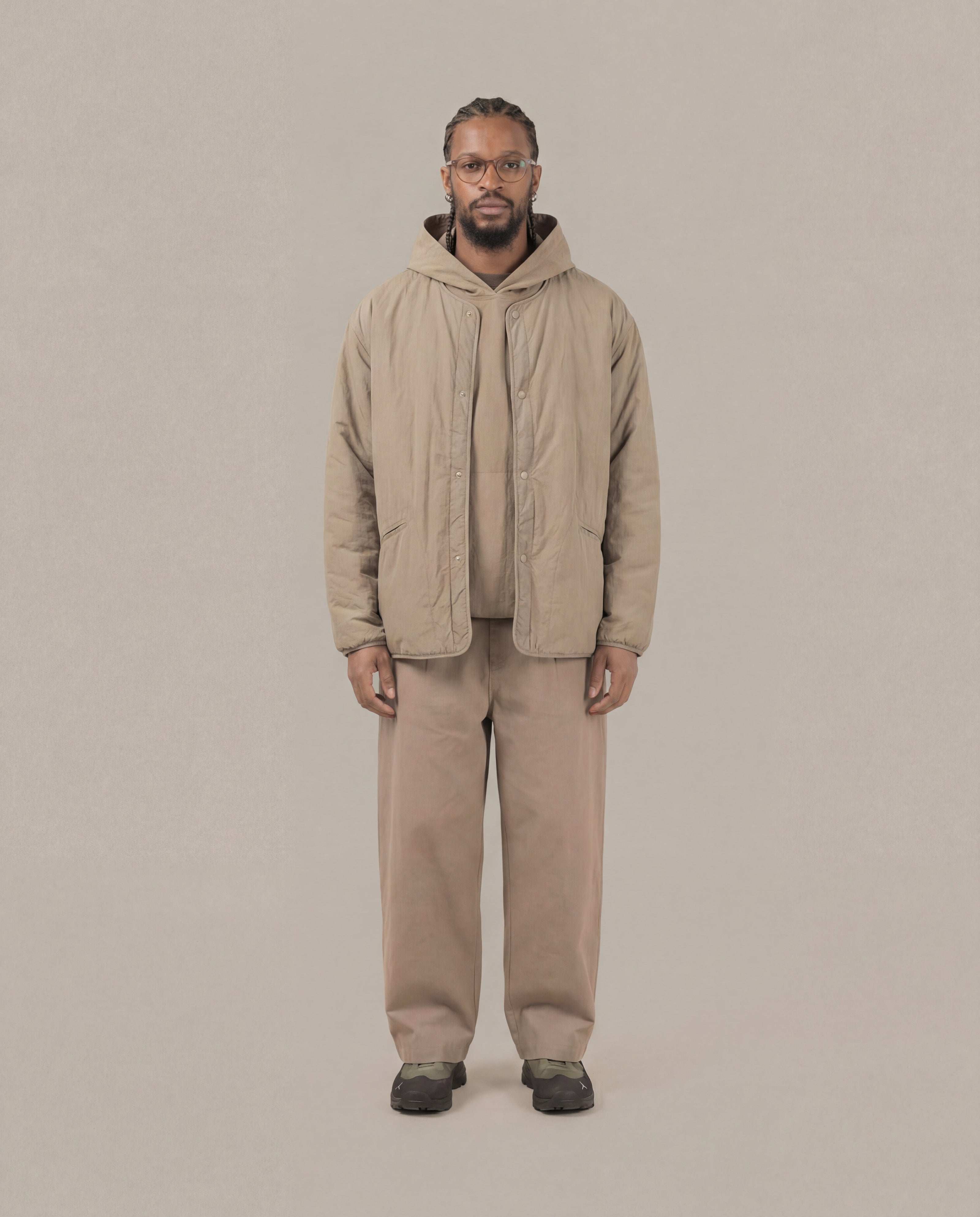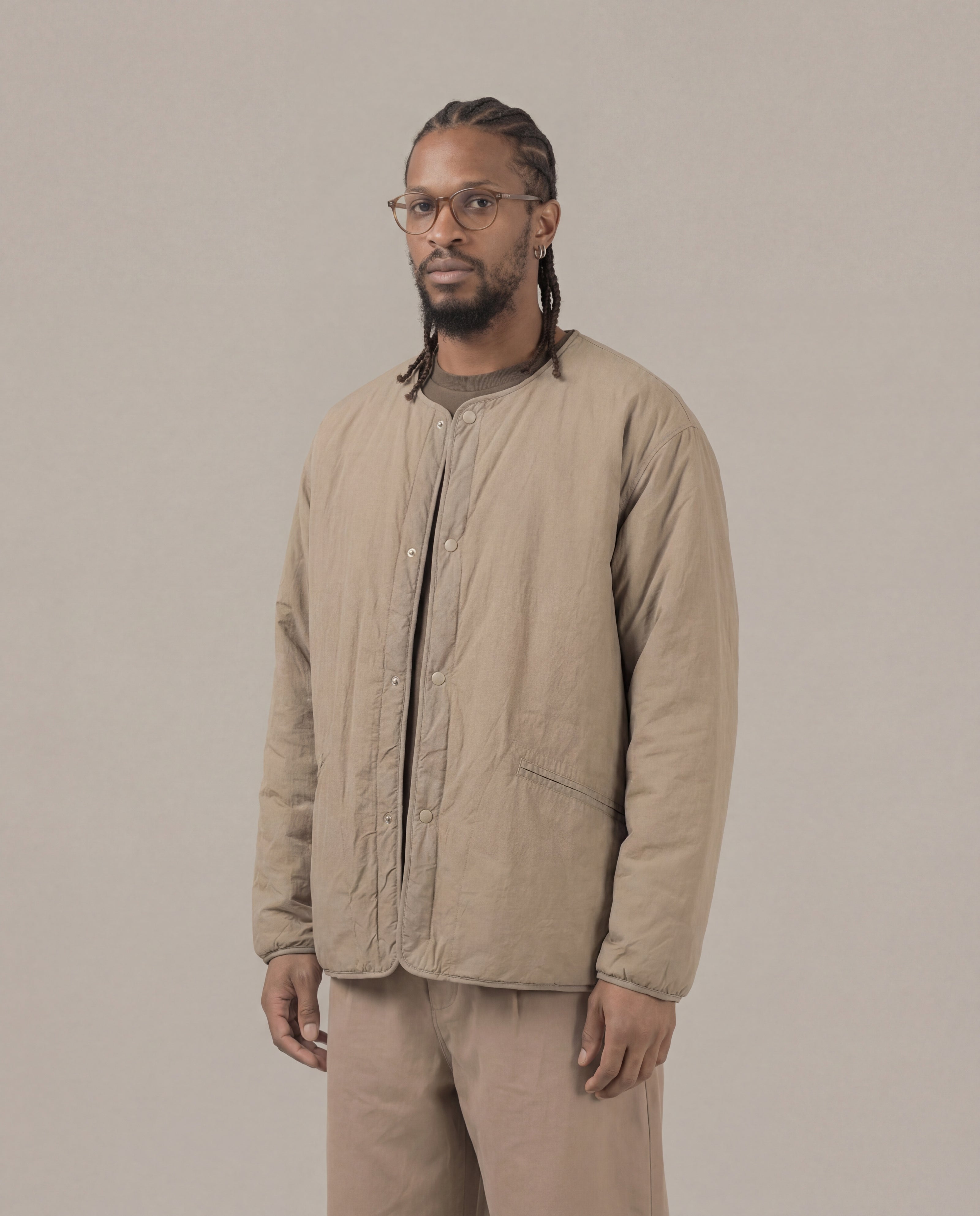 - Functional oversized welt pockets and snap button closure for easy wear.